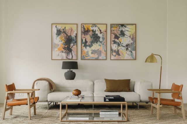 The clients brought some furniture with them including Wegners Flag Halyard Chair and some Bellini Cab chairs and together we added pieces by Lisa Johansson-Pape,Martin Eisler and Børge Mogensen. The living room sofa is from our own editions collection.