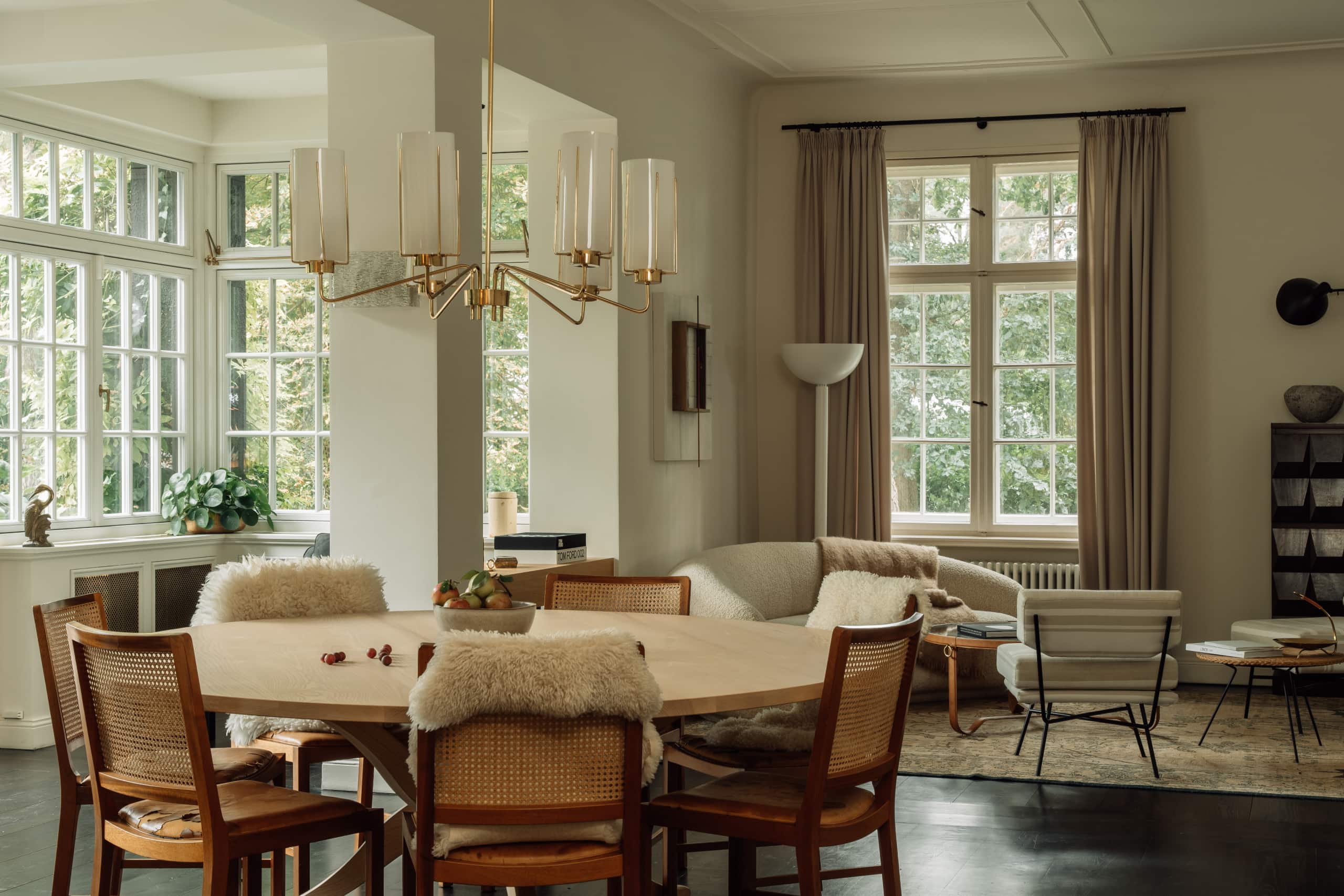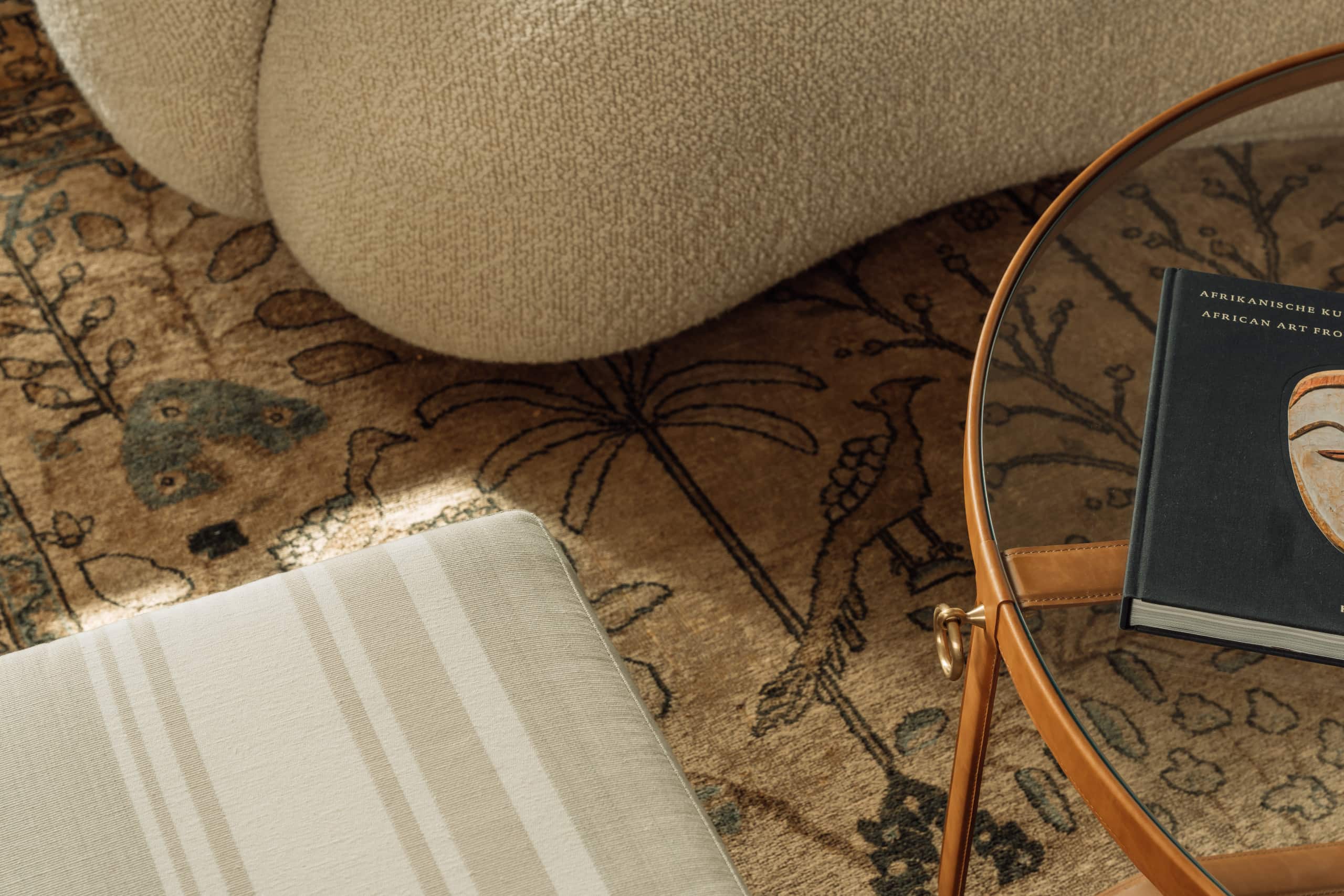 We sourced everything from furniture and lighting to rugs and artwork. Custom built cabinetry, beds and some upholstery were designed by us and produced through our network of small manufacturers who’ve become an integral part of our projects. Furniture pieces include Sofas by Vincent van Duysen, Lounge chairs from B.B.P.R and Borge Mogensen. The leather and glass coffee table is from Jacques Adnet and the bar a vintage De Coene piece from Belgium, to name a few.
